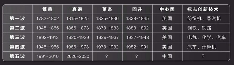 每輪康波都以一個明顯的突破性技術作為標誌代表了不同的時代